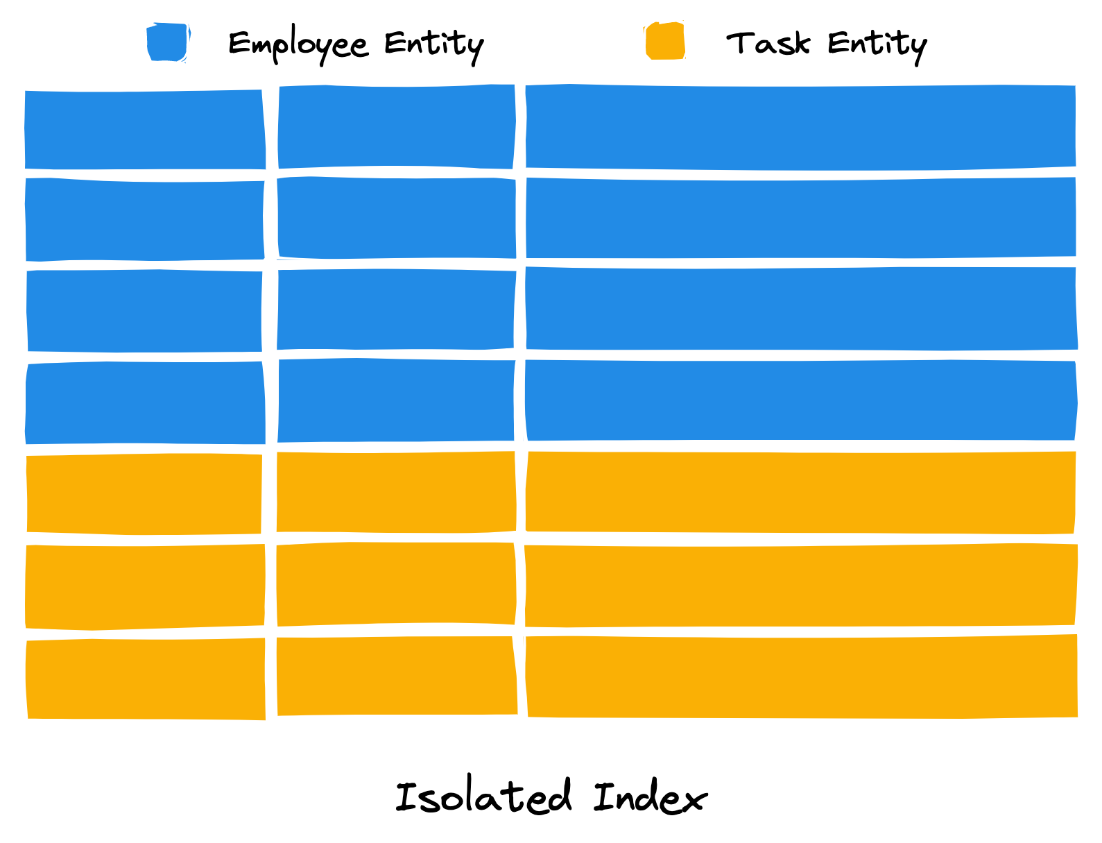 When designing your indexes with Single Table Design, you may find yourself in a situation where the composite attributes of one entity’s partition key are the same as another entity. While in most cases this would be a deliberate choice, made to more easily query across entities via collections, there are times when you might desire further isolation between entities. This scenario is most commonly encountered when the partition key of both entities are defined with an empty composite array. When further isolation between entities on an index is necessary, you can use the scope property on your index to directly impact how records are partitioned.